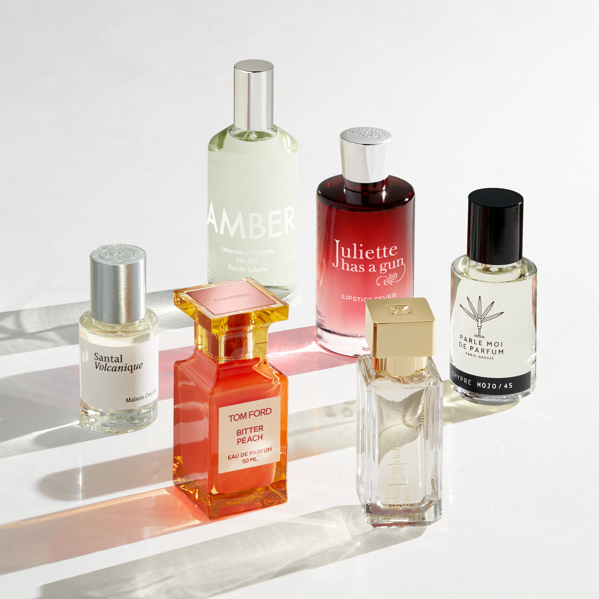 A still life studio shoot advertising a collection of new fragrances to the John Lewis department store.